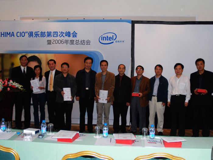 11月2日,2006年度优秀医院信息主管评选活动的颁奖表彰大会在上海举行。CHIMA向原卫生部医政司司长,原卫生部医院管理研究所所长迟宝兰教授,原总后卫生部副部长傅征将军、原卫生部统计信息中心主任,北京大学陈育德教授、原医科院肿瘤医院信息中心主任曹德贤研究员颁发了医院信息化突出贡献奖。大会还邀请了卫生部统计信息中心的饶克勤主任、原总后卫生部副部长傅征、原卫生部统计信息中心主任,北京大学教授陈育德、原医科院肿瘤医院信息中心主任曹德贤、Intel公司亚太区负责医疗信息标准化事务的Steve Yao先生以及CHIMA主任委员李包罗为30名当选的医院优秀信息主管颁奖。