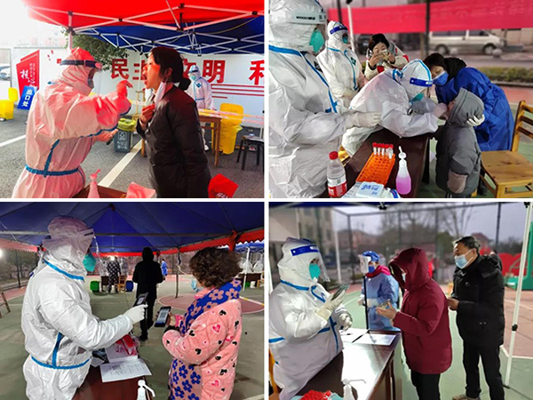 从除夕到正月初六,有这样一群医信人,顾不上杭州连日来雨雪交加的恶劣天气,毅然决然披上白色战甲和医护人员一起并肩抗疫,被人们戏称为医信“大白”们。他们放弃了春节的假期及与家人团聚的机会,义无反顾奔赴抗疫一线。他们是英雄,也是千万抗疫志愿者中平凡的一员,他们坚守在疫情防控一线,通过无线网络,永不消失的电磁波,用实际行动生动诠释了医信人的责任与担当。天寒地冻挡不住他们的坚定步伐,汗流浃背褪不去他们的无私担当。星星之火可以燎原,微微晨光点燃希望,众志成城协同抗疫!疫情反复,逆向而行。医信人发扬连续作战精神,确保抗疫一线信息资料通过手机移动的核酸平台第一时间传给指挥部,第一时间告知大众结果,用实际行动做到了“全线及时保障”!