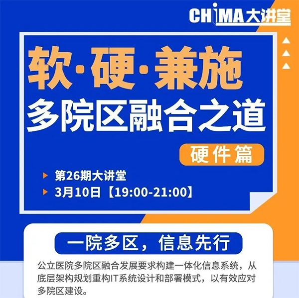 直播预告|3月10日CHIMA大讲堂第26期:多院区融合之道(一)硬件篇