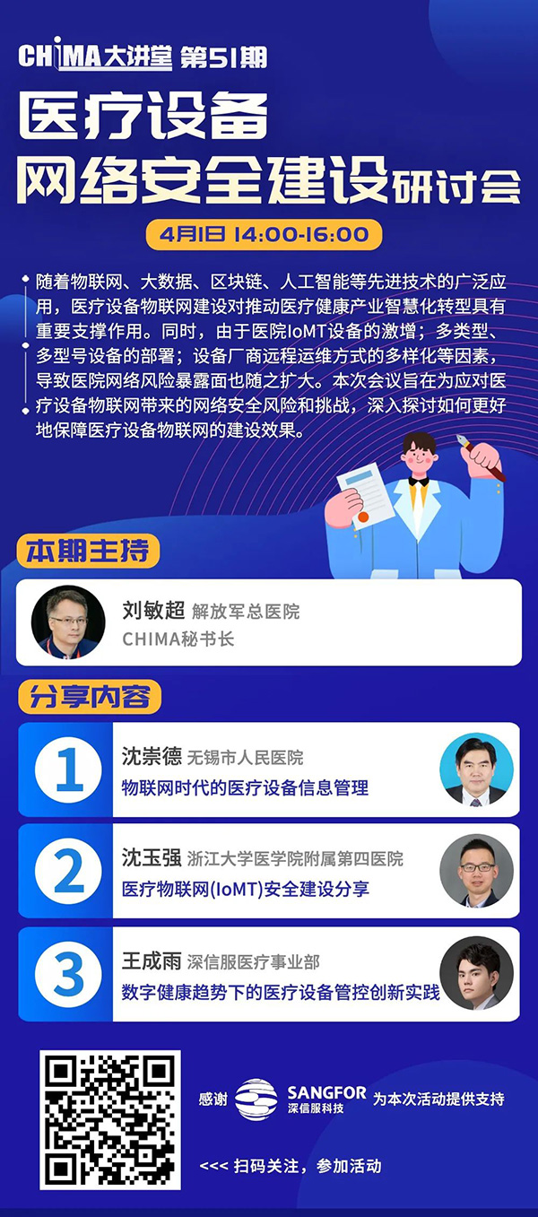 直播预告|CHIMA大讲堂:医疗设备网络安全建设研讨会