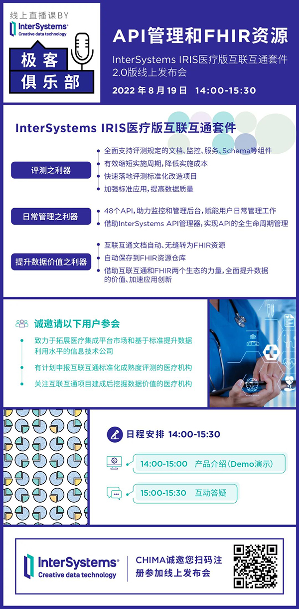 诚邀参会|8月19日14:00,InterSystems IRIS医疗版互联互通套件2.0版线上发布会