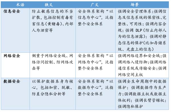 信息安全工作是为业务服务、为业务增长服务的。这个理念很多人都认同,但实际做起来可能千差万别。我不止一次地回答过这类问题:“我们医院要做信息安全了,大家有什么产品推荐吗?”一定要把“一上来就想着用什么产品”这个观念从脑海中摒弃掉。首先要厘清医院信息系统的业务本质是以各科室业务需求为导向,以病人为中心,以“质量,安全、服务、效率”四个关键维度为核心的信息化建设项目,促进临床诊疗、医疗管理与质量控制的可持续改善,建立健全医院运营管理体系,实现运营与医疗的高效协同。医院的业务系统有哪些,需要我们统筹规划顶层设计信息安全时,自己心中有数。为了更好的理解,我们首先厘清概念,什么是信息安全、网络安全、数据安全。