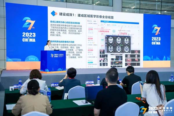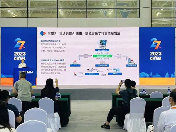 深圳市龙岗区卫健局智慧健康中心朱艳艳为现场专家与来宾分享了区域医学影像平台在深圳市龙岗区的建设与落地,并对未来提出了多方面的展望:进一步建设与优化区域医学影像平台,集约共建AI智能技术、分学组诊断……