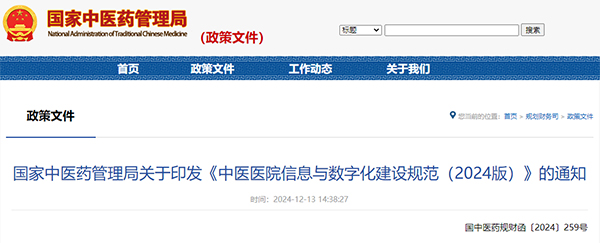 为进一步加强和规范中医医院信息化建设,提升中医医院信息化与数字化水平,我局对《中医医院信息化建设基本规范》(国中医药办发〔2011〕46号)进行修订,形成了《中医医院信息与数字化建设规范(2024版)》。现印发给你们,请参照执行。
