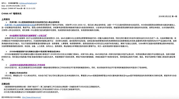 (CHIMA HIT NEWS 第一期邮件截图)
