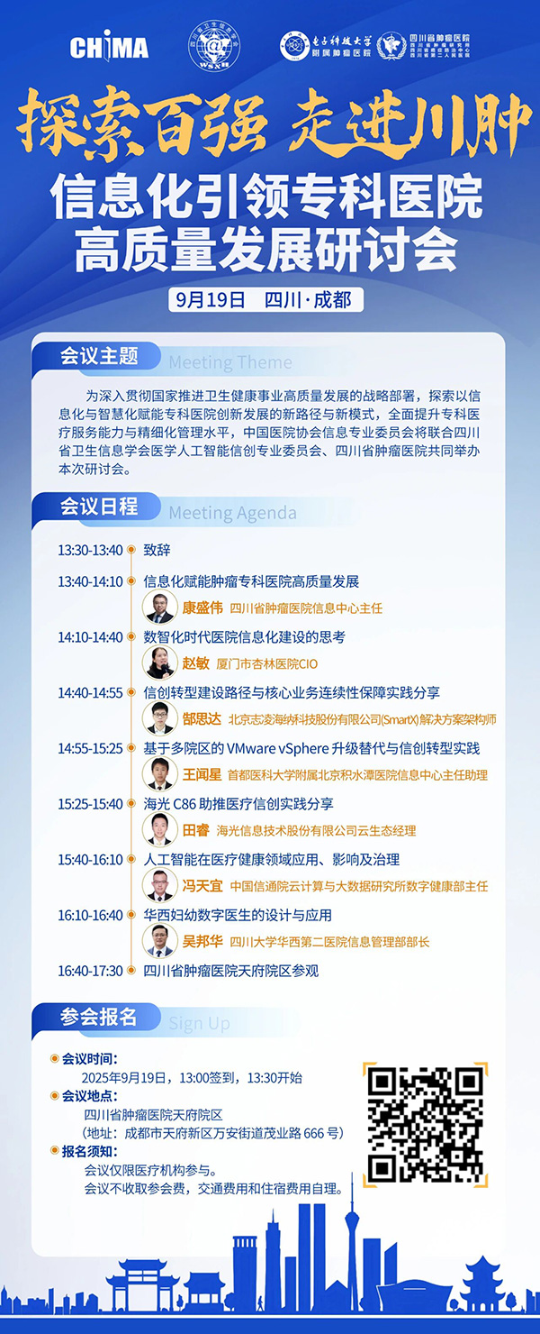 探索百强,走进川肿 | 信息化引领专科医院高质量发展研讨会将于9月19日召开,欢迎报名参加