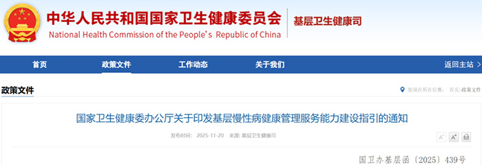 根据国家卫生健康委、国家发展改革委、财政部、国家医保局、国家中医药局、国家疾控局《关于加强基层慢性病健康管理服务的指导意见》(国卫基层发〔2025〕15号),乡镇卫生院和社区卫生服务中心通过功能整合,可设立分区合理、动线流畅的“一站式”基层慢性病健康管理中心。为指导各地根据需要促进基层慢性病健康管理服务能力建设,优化服务流程,提高服务质量,适应城乡居民慢性病健康管理服务需求,我委制定了《基层慢性病健康管理服务能力建设指引》,现印发给你们,请结合实际参照执行。