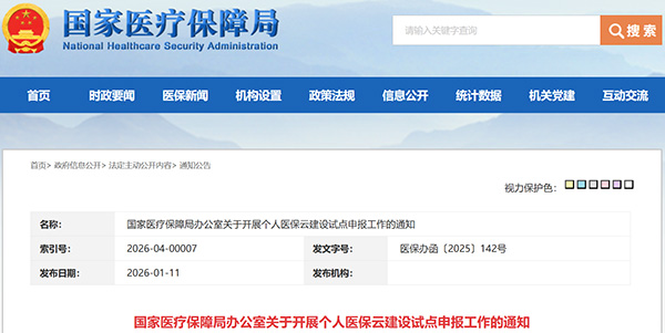 国家医保局:“个人医保云”建设试点启动
